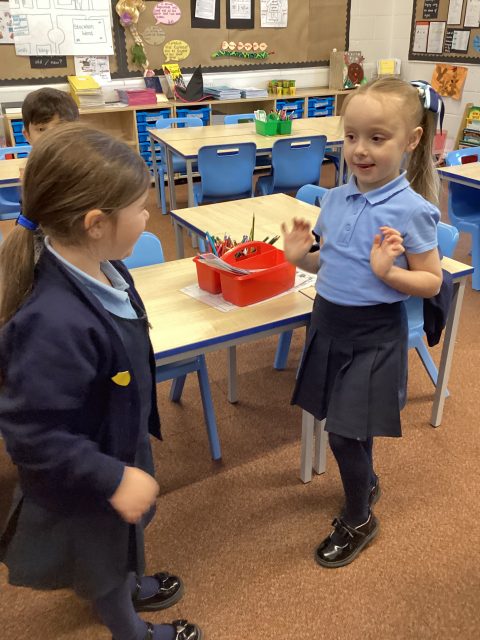 Carrie came in to speak about drama on Friday. She brought in props for the children to use and lines for them to act out using expression.