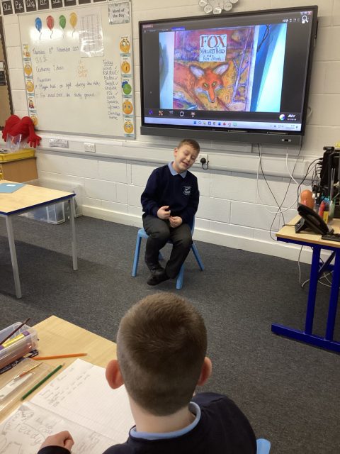 Today in English, 3M got into the role of some characters in the book we are exploring – Fox. Some children then answered questions from the class in role of a character.