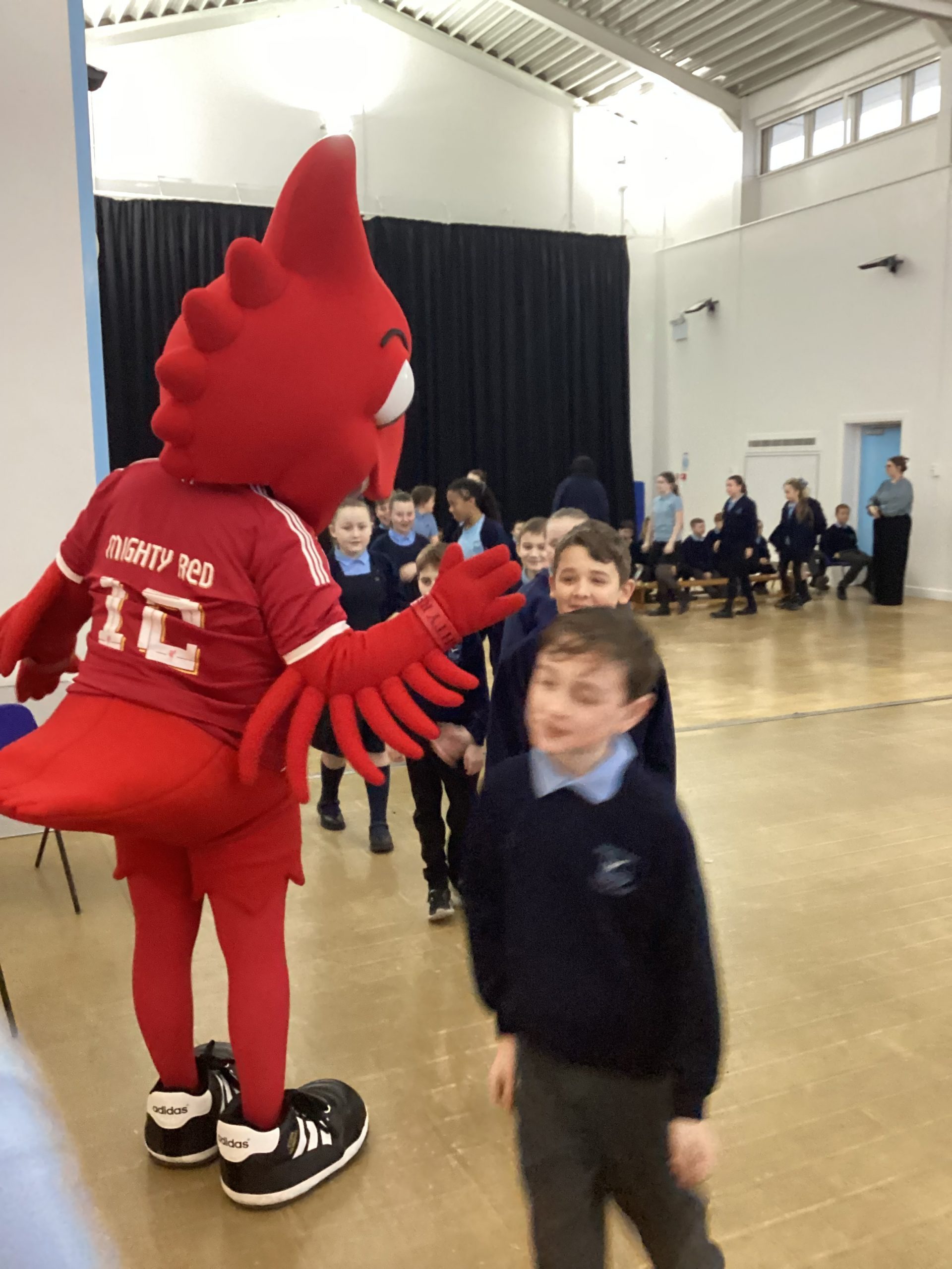 Mighty Red and Wendy came to our school to tell us the exciting news about the ‘Feed your mind’ programme.