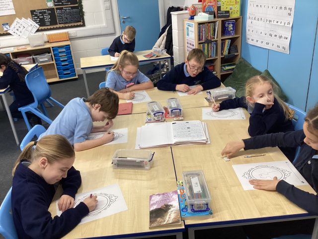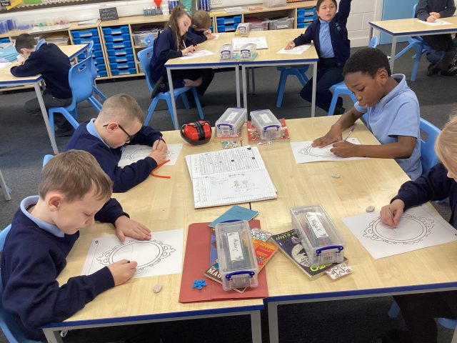Year 3 enjoyed celebrating Eid by designing their own plates using geometric patterns. The plate symbolised the lovely food that would be shared and the design represented Islamic art patterns.