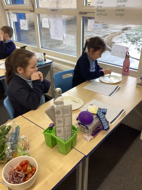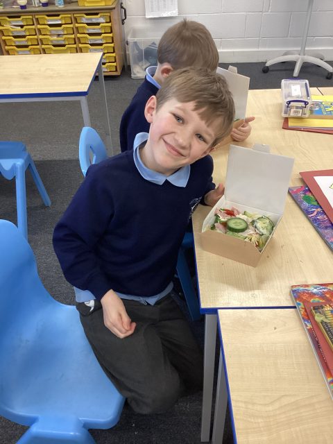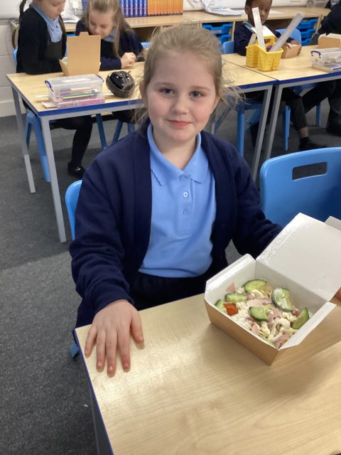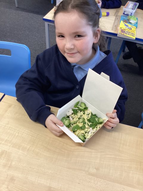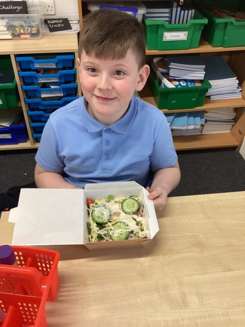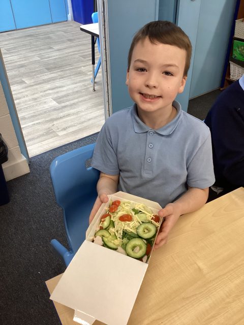 Year 3 enjoyed making healthy salads for DT week. We researched different salads, tried different foods and then picked which foods we wanted in our salads.