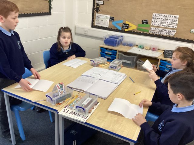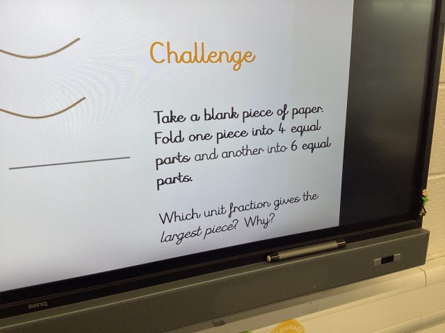 3McK completed a challenge in maths last week where they had to divide their paper into different fractions. Their first challenge was to split their page into quarters.