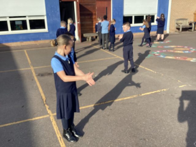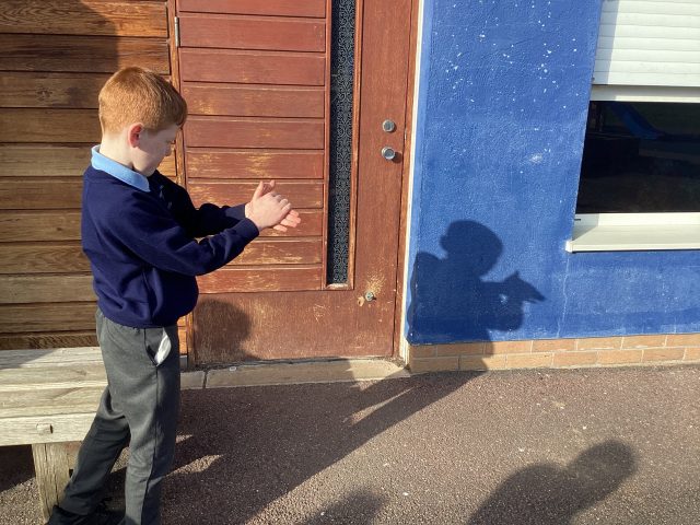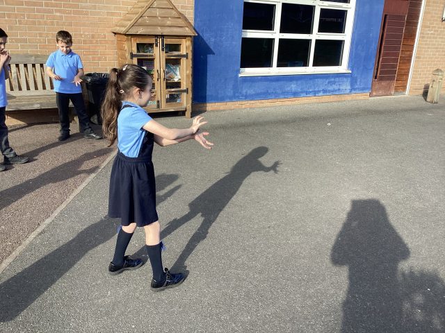 3McK enjoyed going outside for science to look at our shadows. We talked about how light travels in straight lines and that shadows are created when an opaque object blocks the light. This stops the light passing through which creates a shadow.