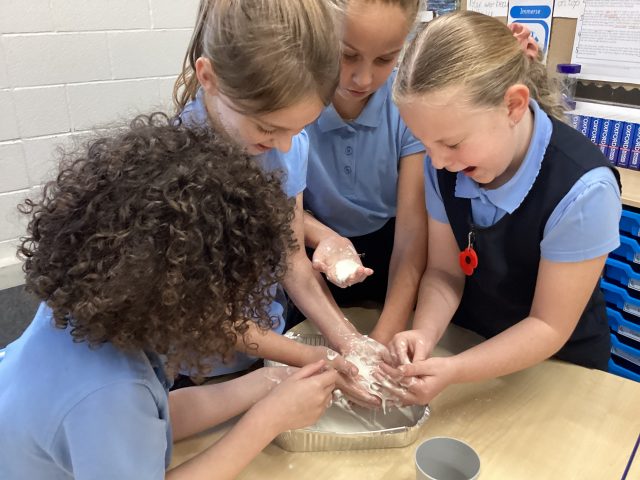 In science, we have been learning about states of matter. Today, we had lots of fun using oobleck to understand that objects can change state.