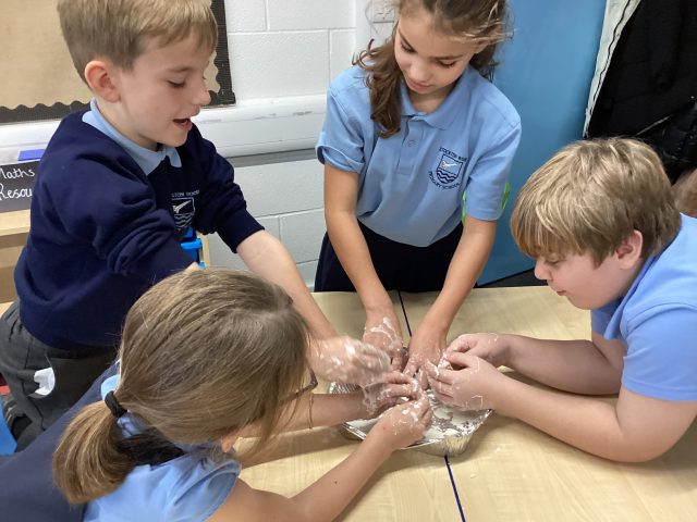As part of Science week, we’ve been learning about how penguins have adapted to their environment. Blubber helps them keep warm, we did a taste to see how blubber keeps our hands warm.