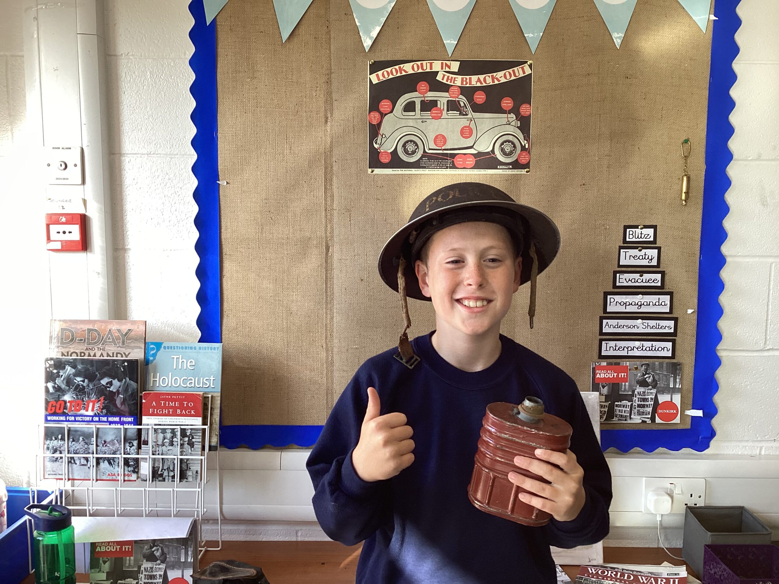The children are enjoying learning about World War2! We love the tin hat!