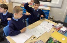 In Maths, Year 6 have been learning about vertically opposite angles equalling the same amount.