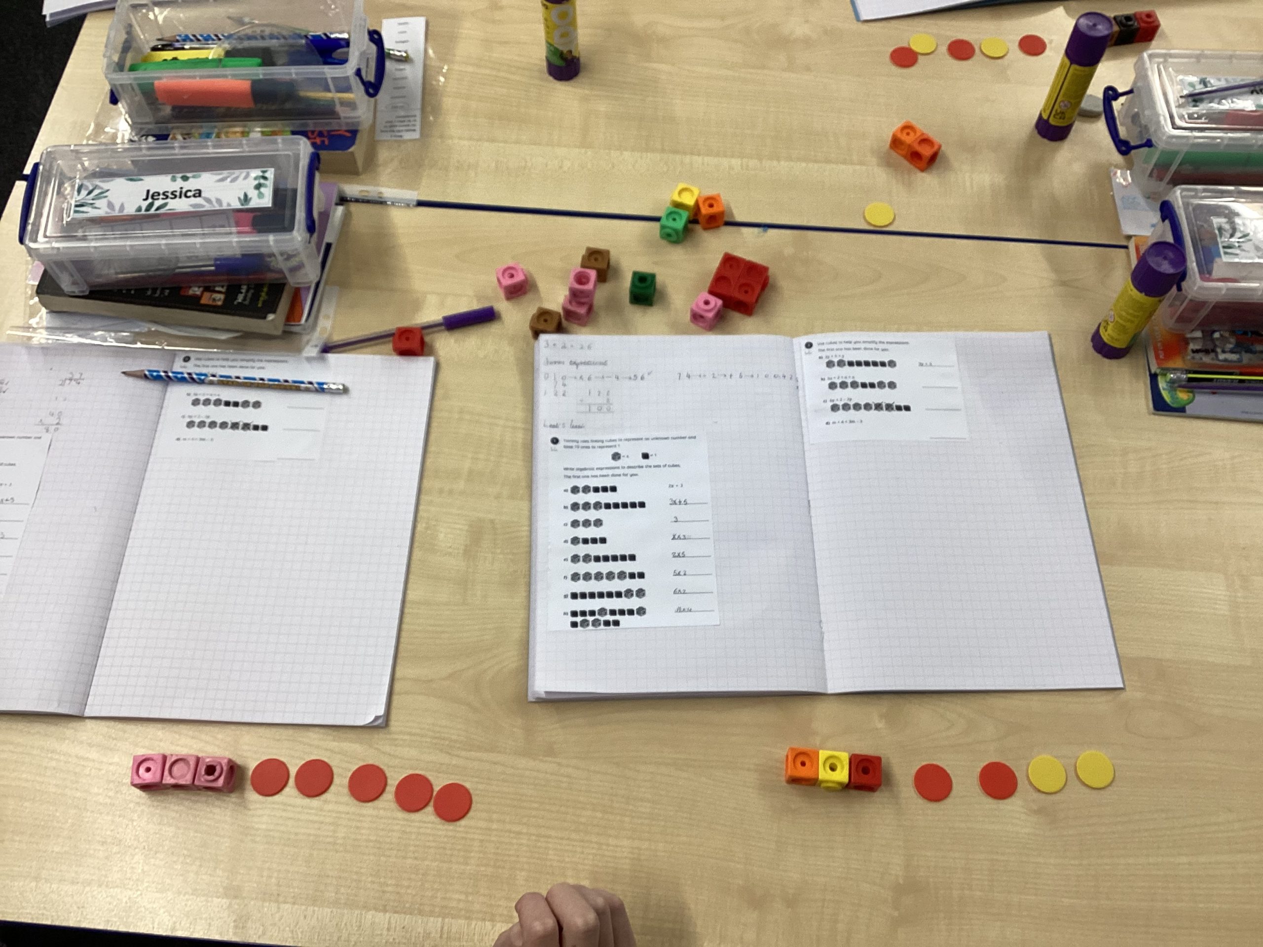 Year 6 used concrete resources when introducing their new topic, algebra. We focused on creating different forms of expressions and how to simplify them.
