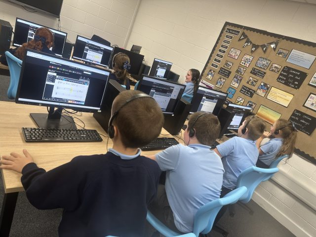 In computing, the children were using Charanga to create their own compositions. This involved both computing skills and music knowledge. The children created brilliant tunes and loved the process!