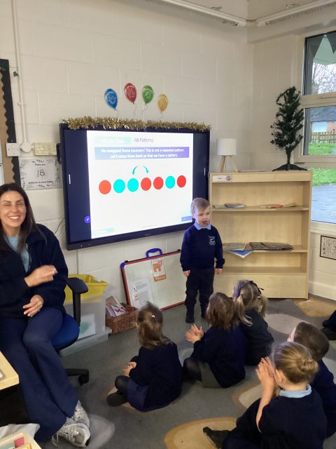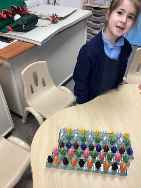 We looked further at patterns in Maths, looking at patterns with more than two attributes! We then showed off our skills in provision, making patterns of our own!