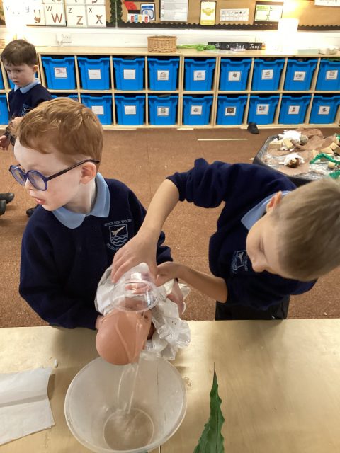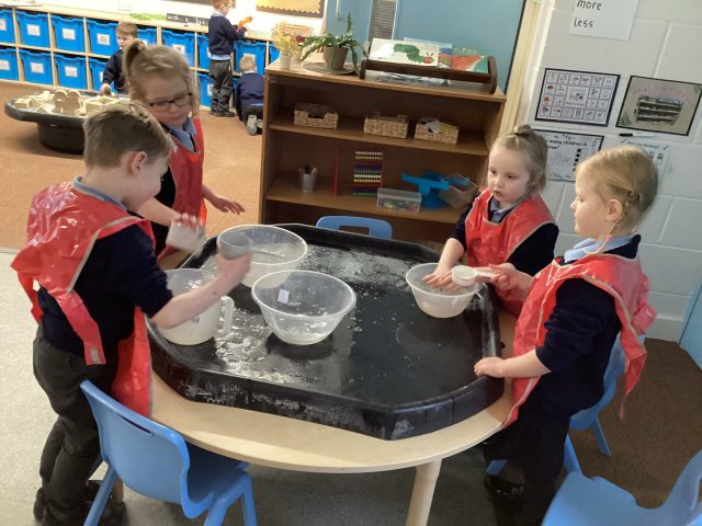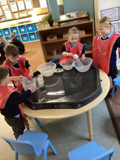 Reception have created their own reindeer food to help guide Santa’s reindeers. We measured oats and magic into a pot, then we mixed it up and poured it into a small bag.