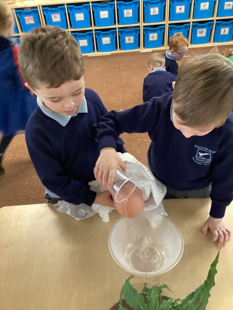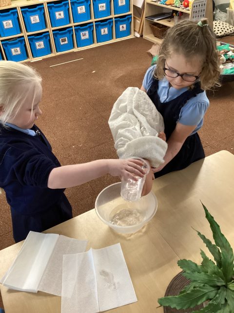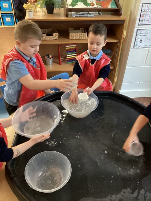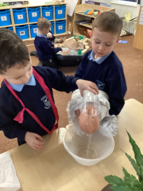 Reception have explored capacity in Maths. Using water and different sized containers we discussed which container has more capacity and which container has less capacity.