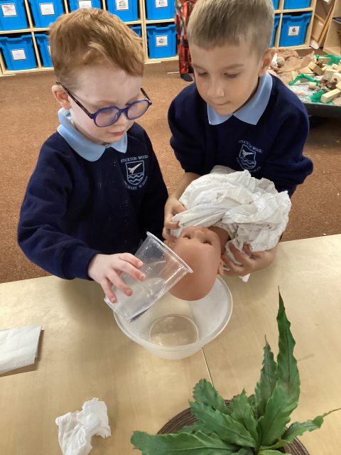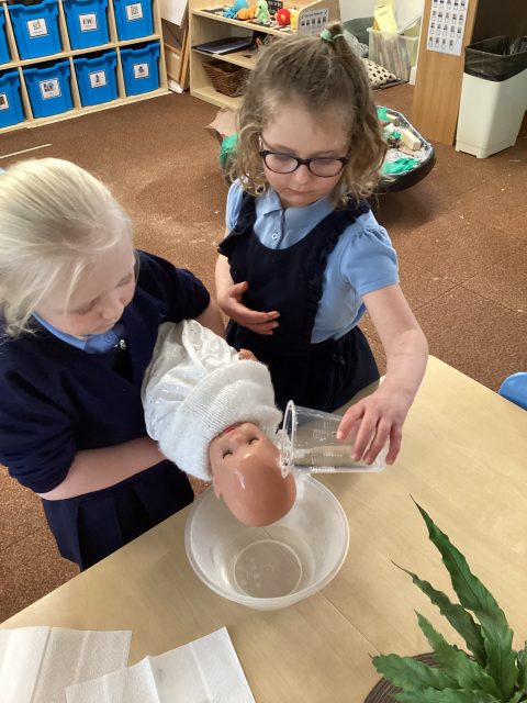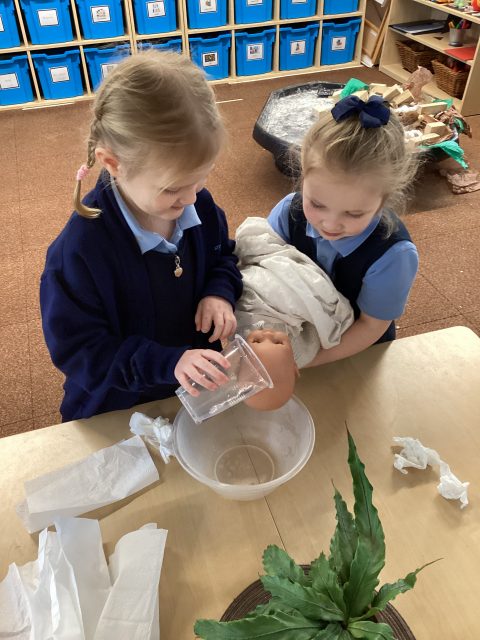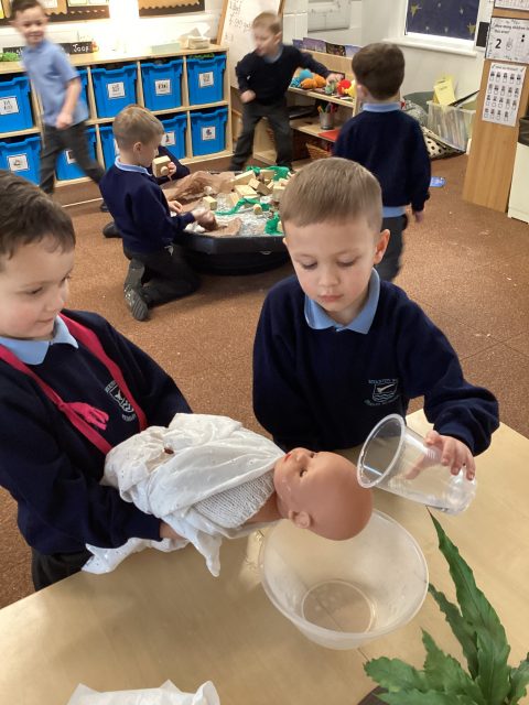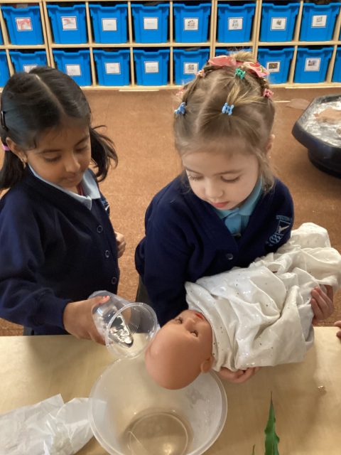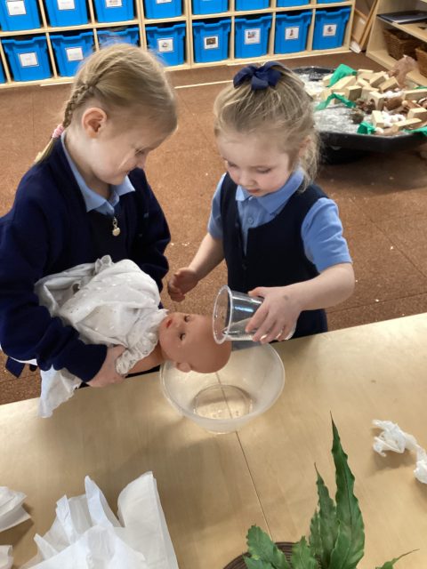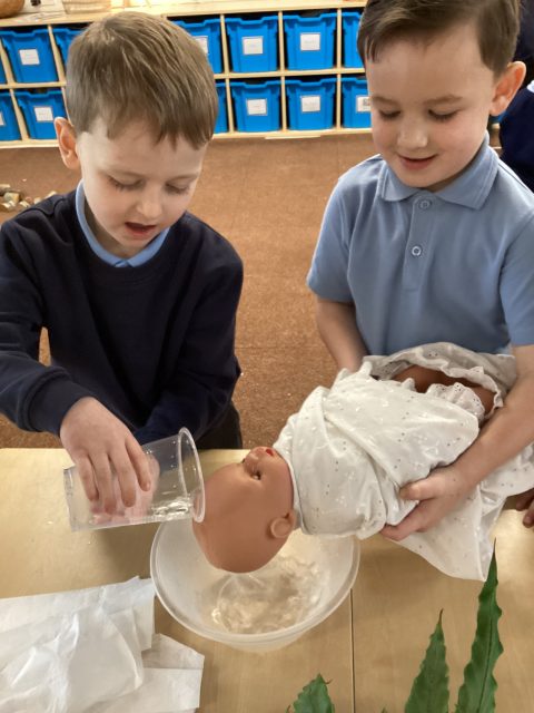This week Reception have explored baptisms. We have discussed what a baptism is and what happens during a baptism. The children recreated a baptism in class.