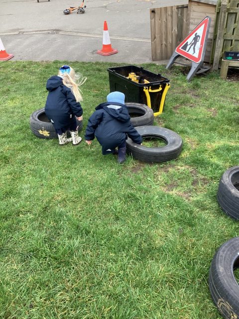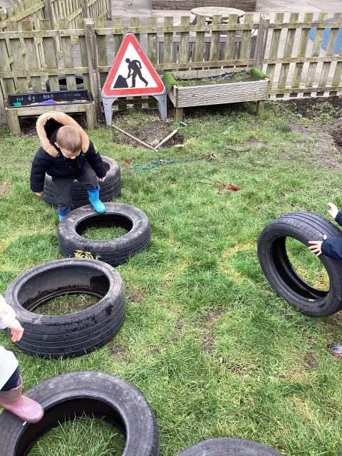 Today Reception have discussed what is safe and unsafe outdoors and in our homes. We discussed how we can stay safe in the kitchen. Outside we created an obstacle course using tires. We wore our wellies to keep our feet safe and dry on the grass and to stop us slipping in the mud. We took it in turns to have a go of the obstacle course to keep ourselves and our friends safe!