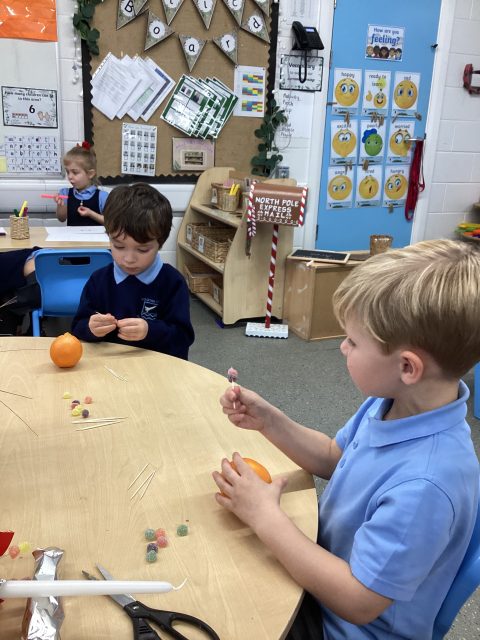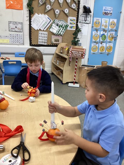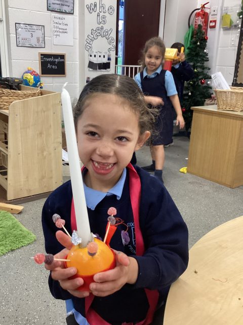We have been learning all about the different ways people celebrate Christmas. We know that some people go to church to celebrate and that Christmas can be marked in many special ways. We have also learned about the different reasons for each part of the Christingle and what they represent.