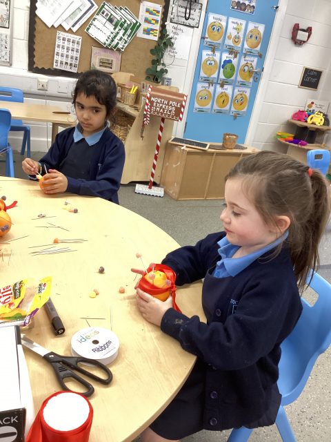 In reception we have been making our very own superhero’s for Art Week! We have used scissors, glue, card and sticks to make them.