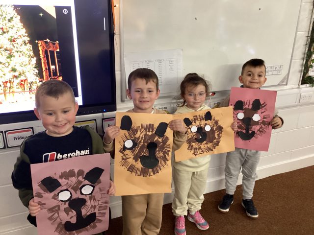 We’ve had a great week exploring mixing primary colours to make secondary colours. We thoroughly enjoyed reading ‘Mix it up!’ By Herve Tullet and have explored printing using a range of objects. Look at the wonderful Teddy Bears we have created using our printing and collage skills.