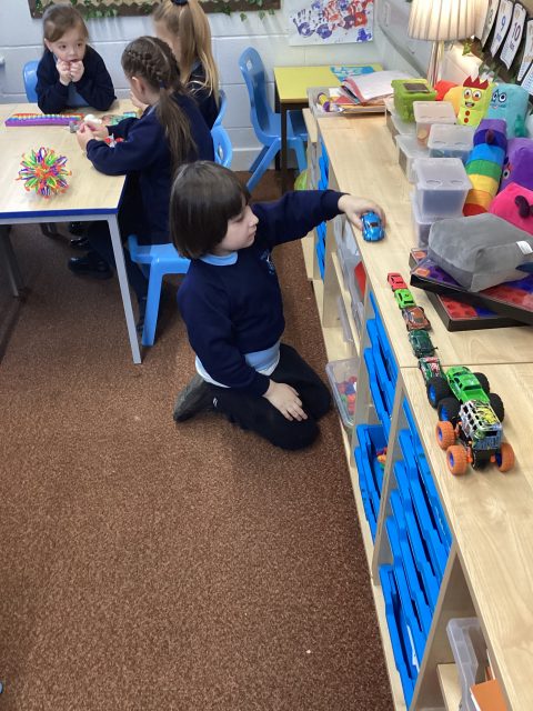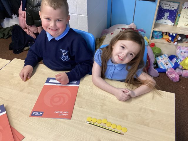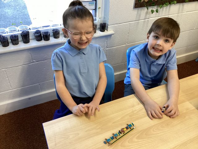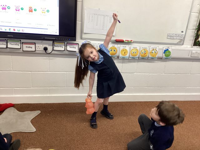 Super skills displayed whilst exploring the mass of objects. Good use of ‘lighter and heavier’ vocabulary when comparing the mass of classroom objects.