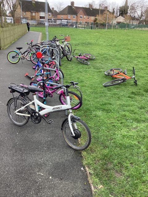 We picked up toys and litter on the playground, we saw bikes not put neatly in the bike store, we went into the dinner hall after lunch and saw food on the floor and our memorial garden looked beautiful with all the daffodils and no litter. We talked about how we can make our school environment look lovely and what we can do to help.