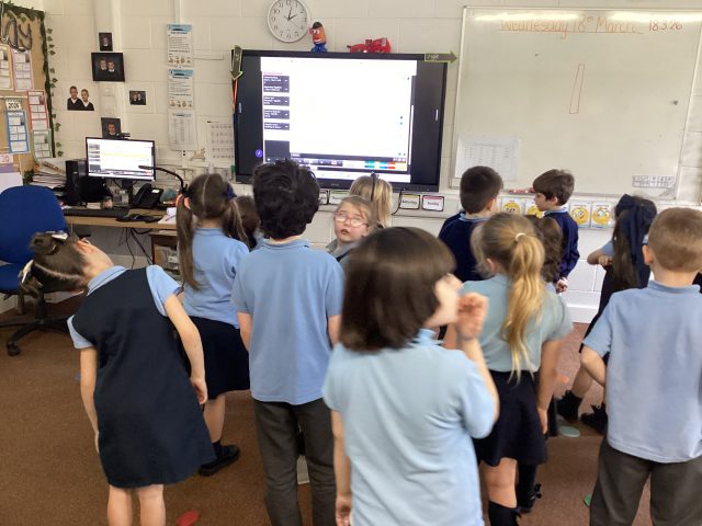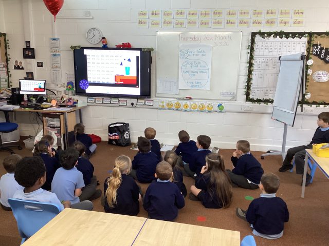 we watched a video all about being safe on the internet. We know that we must tell a grown up if we see something we don’t like and we never talk to a stranger on our devices.