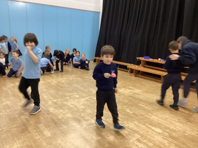 Today in our PE lesson we started gymnastics. We have looked at different ways of moving and travelling. We moved high, low, in different directions and different speeds.