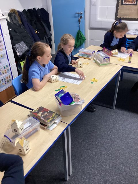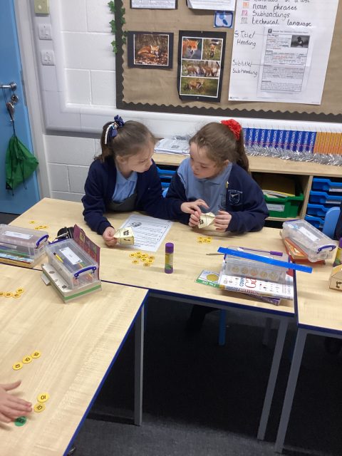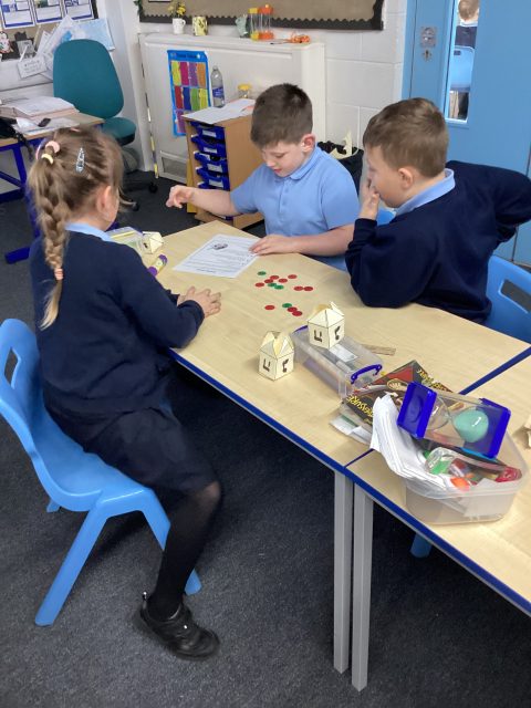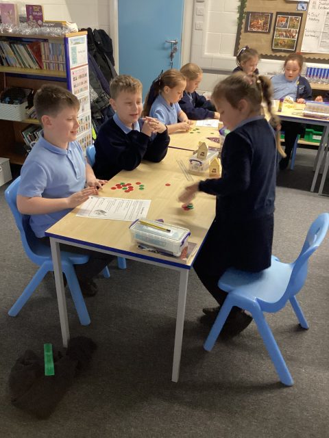 This week in Maths, we have been focusing on sharing and grouping. Today, we used counters to answer word problems and discussed whether it was sharing or grouping.