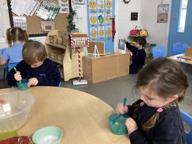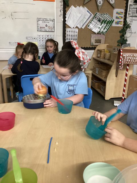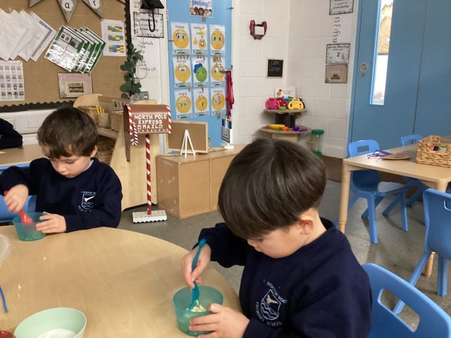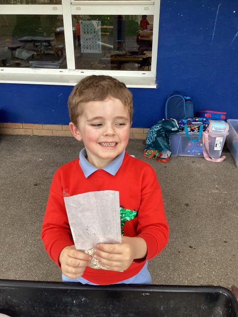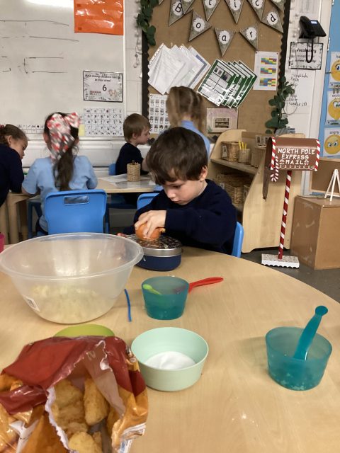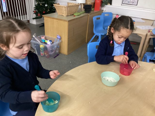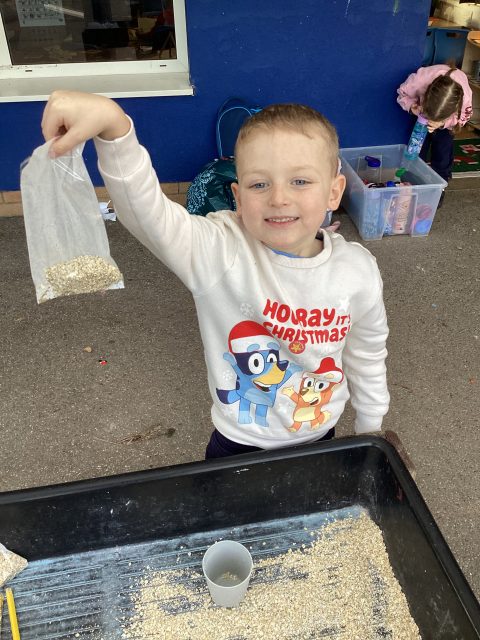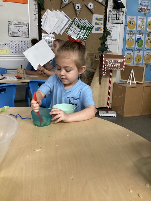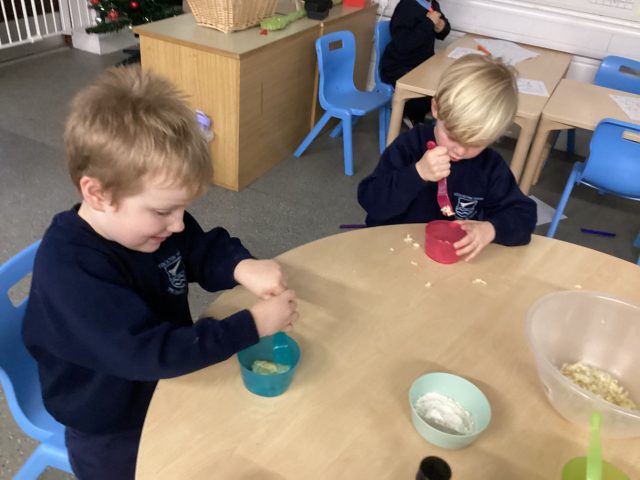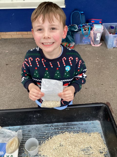 Reception have created their own reindeer food to help guide Santa’s reindeers. We measured oats and magic into a pot, then we mixed it up and poured it into a small bag.