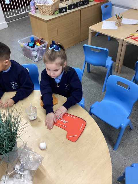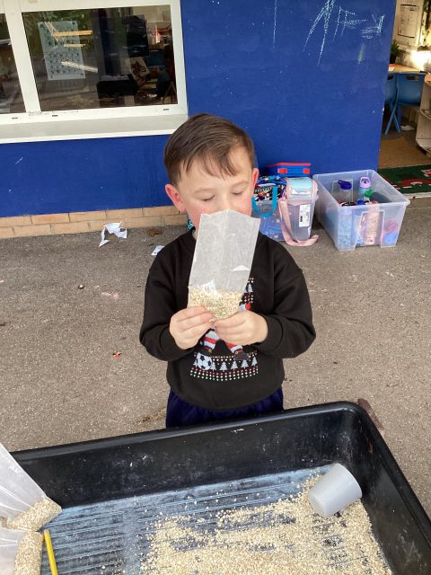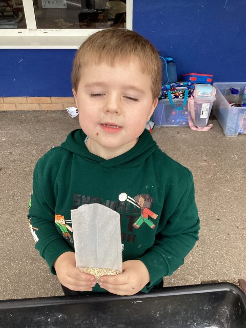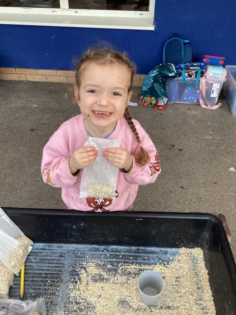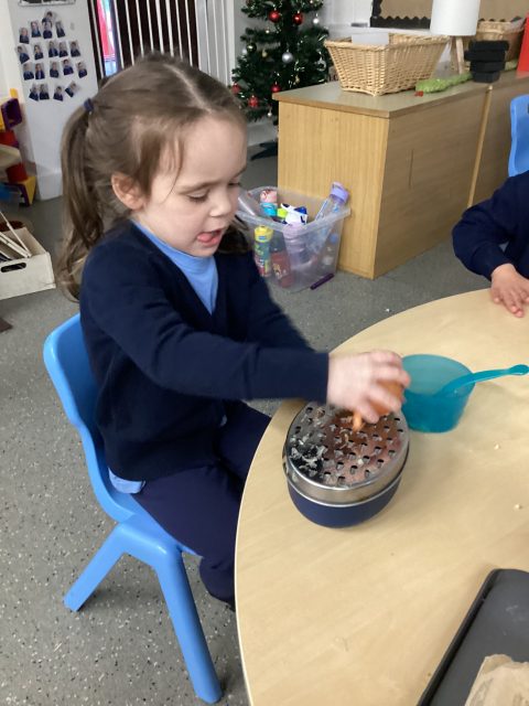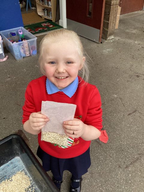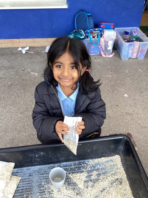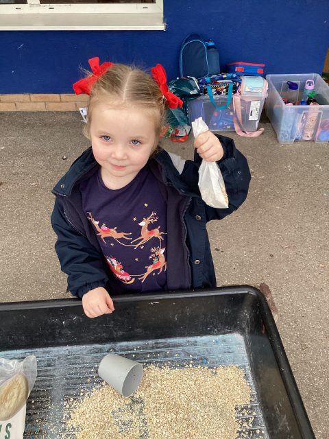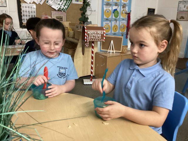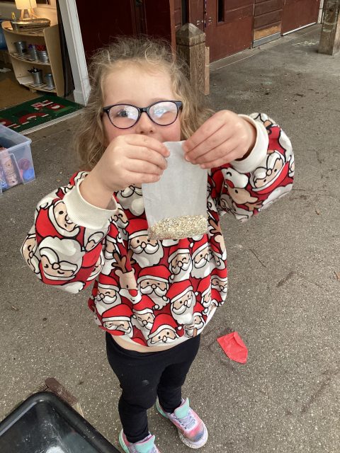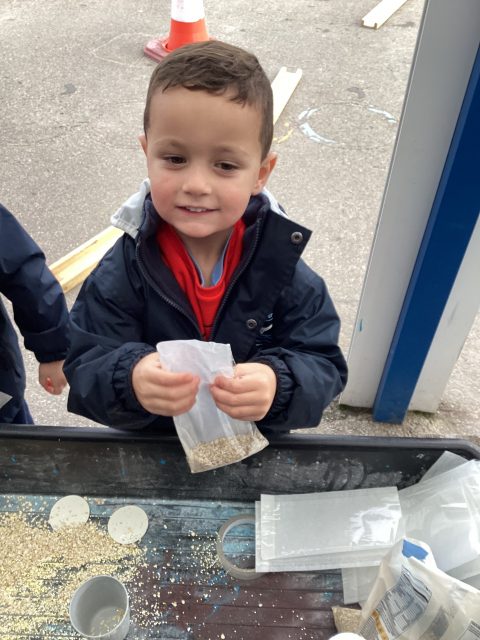 Reception have created their own reindeer food to help guide Santa’s reindeers. We measured oats and magic into a pot, then we mixed it up and poured it into a small bag.