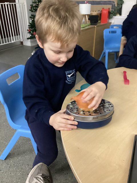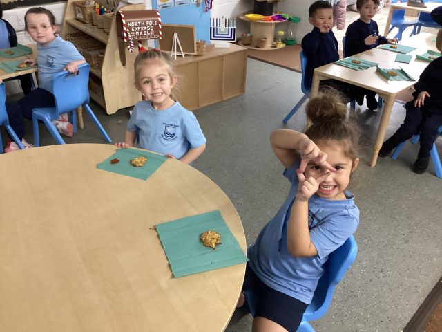 We made a reindeer this week! Constructing with different foods is a really tricky skill. It requires steady hands, patience, but there is also an element of speed too before the ingredients start to melt! The children did an amazing job, and they tasted pretty good too!