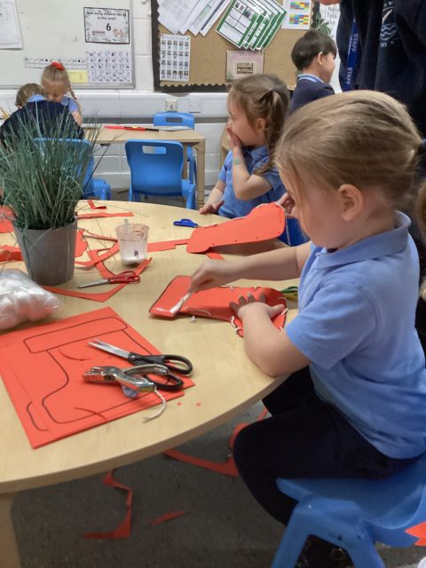 As part of DT week, we have been developing our cutting skills. We made snips in both paper and card, talking about how much trickier it is to cut the card than the paper. We made sure our hands were in the right place.