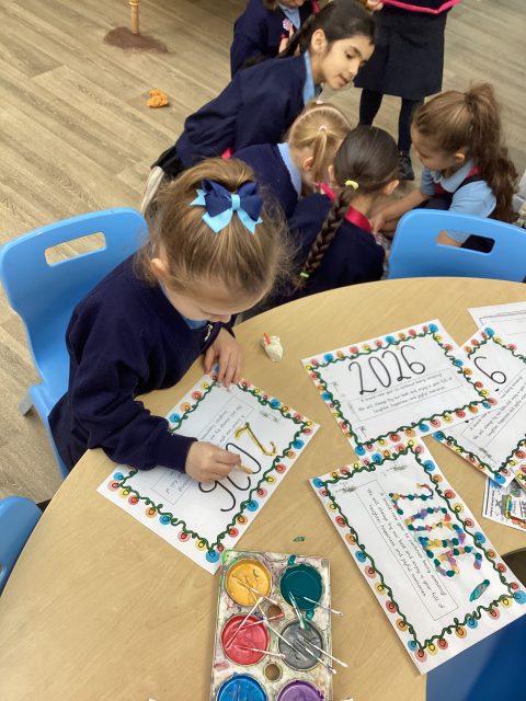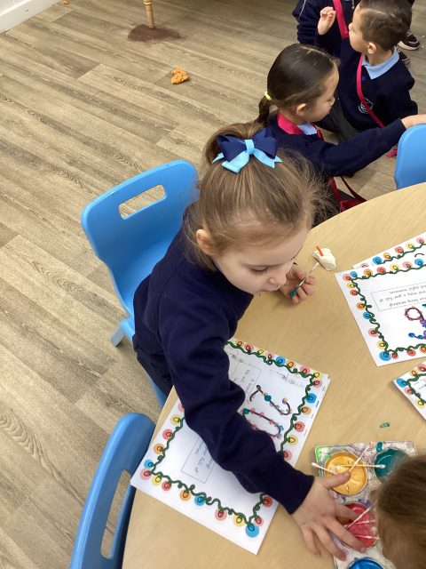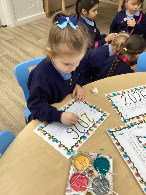 For Divali, the festival of light, we made our own diya lamps! We had lots of fun decorating them with bright colours like red, gold, blue, and green. We used paint, glitter, and stickers to make them look beautiful. Our lamps looked so shiny and colourful when they were finished. We learned that diya lamps are used to bring light and happiness during Divali. It was a fun and special activity in Reception!