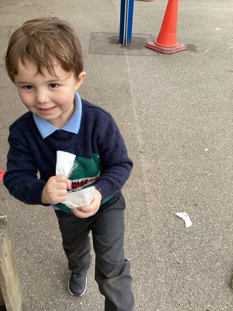 We enjoyed making our own sausage rolls in our cooking session this week. We had to carefully roll the pastry around the sausage, then brush them with milk! This was trickier than it looks, and some of them kept tricking us by unrolling themselves! We then enjoyed them at snack time (some children enjoyed some delicious meat free rolls too 🥰)