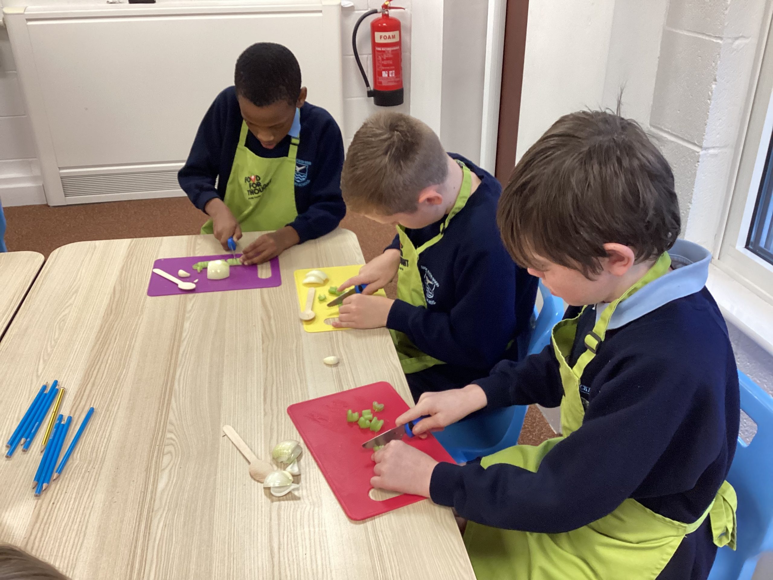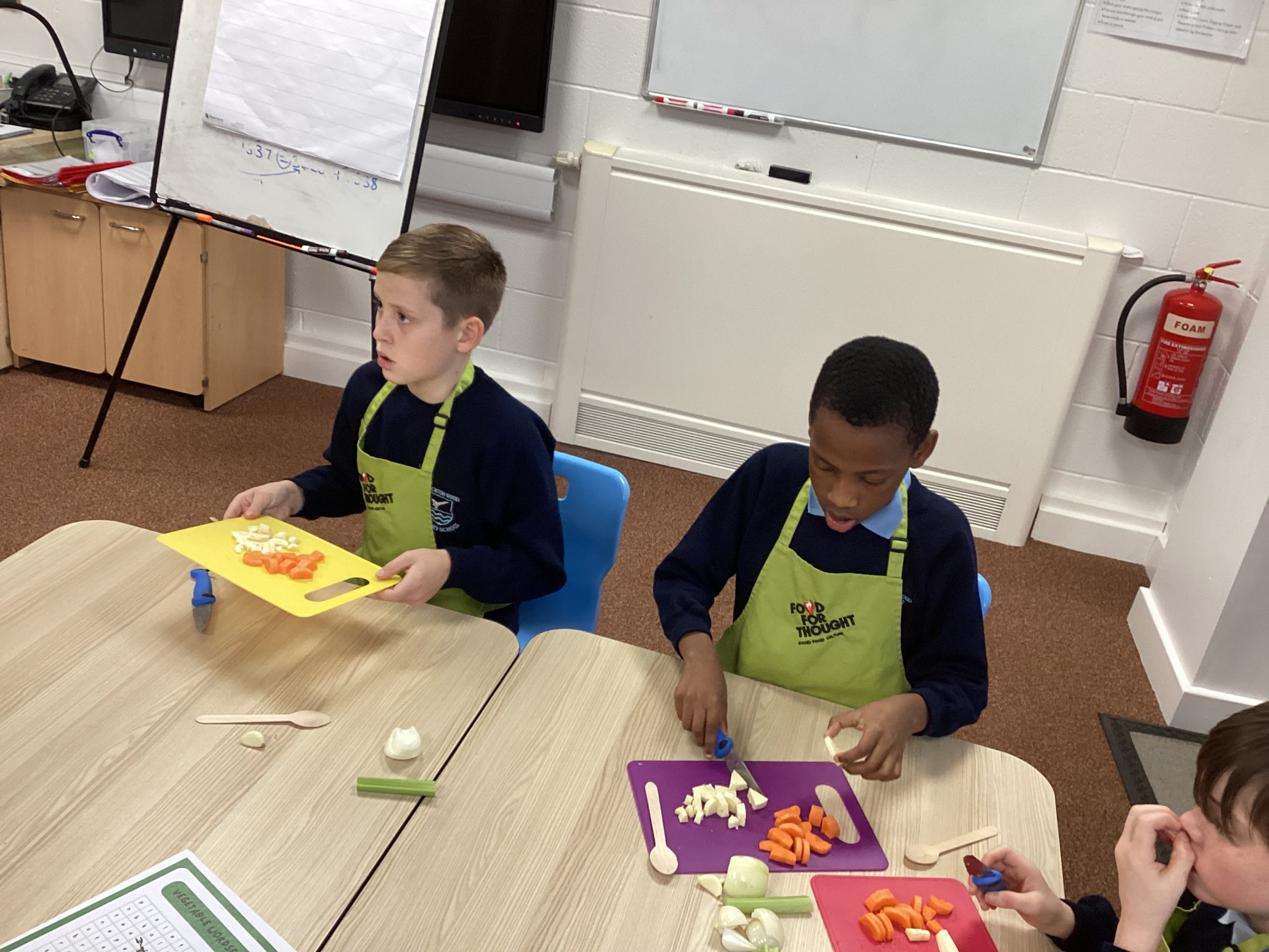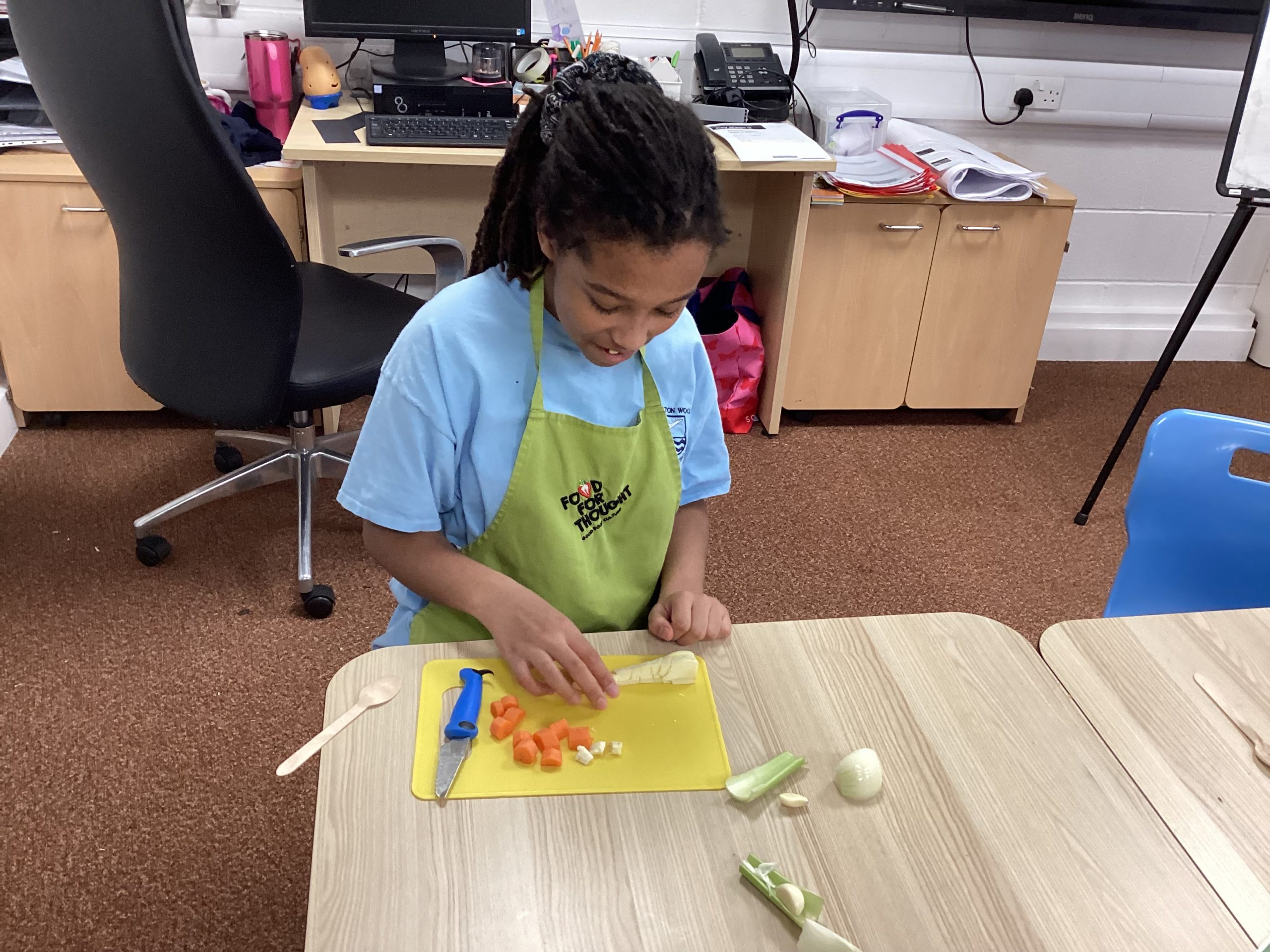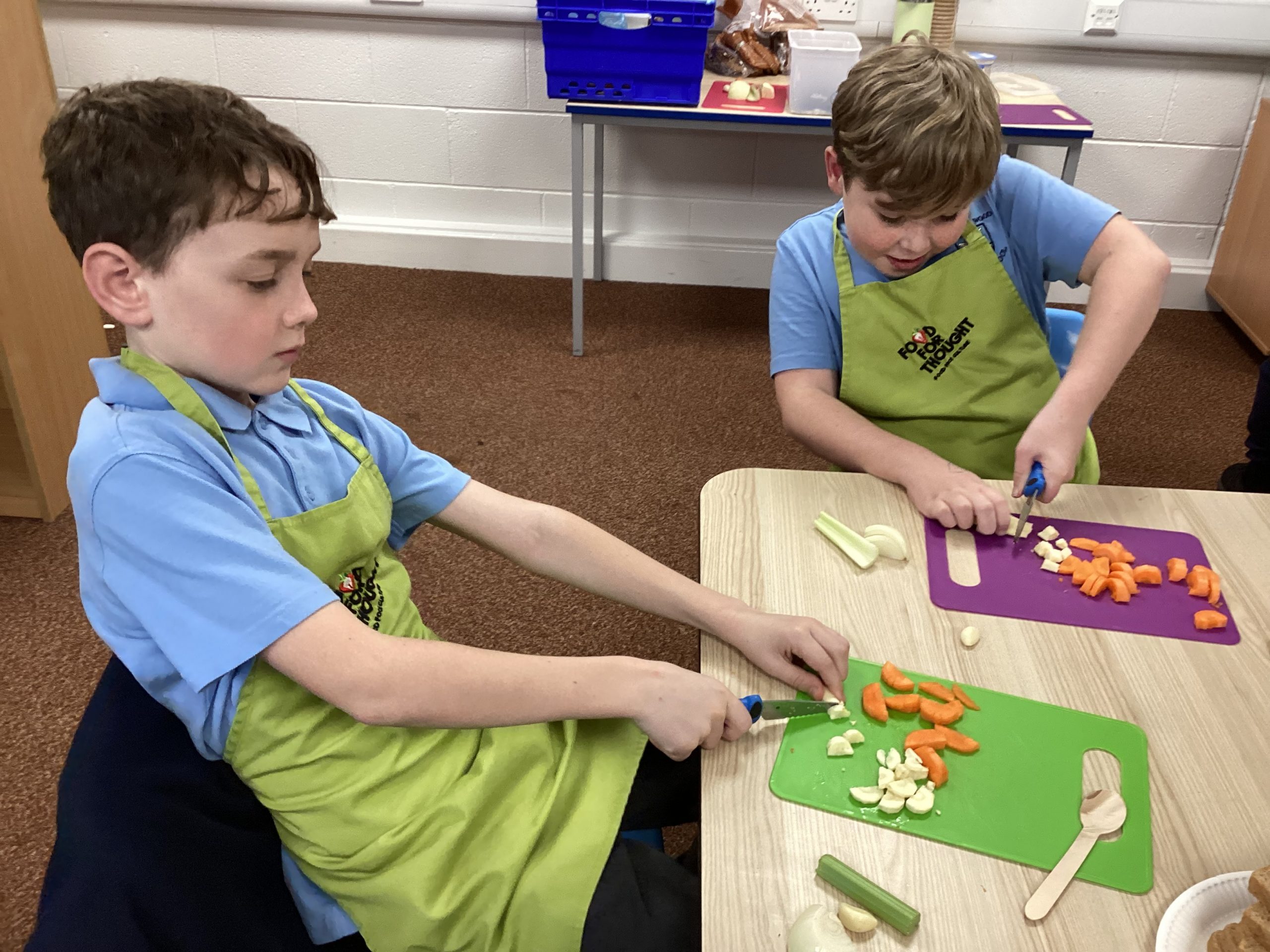 We have learnt how to chop onions, parsnips, celery, carrots and garlic! The onions made us cry! But it was worth it because it made our soup taste delicious. There are definitely some future chefs in the making at Stockton Wood.