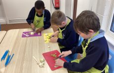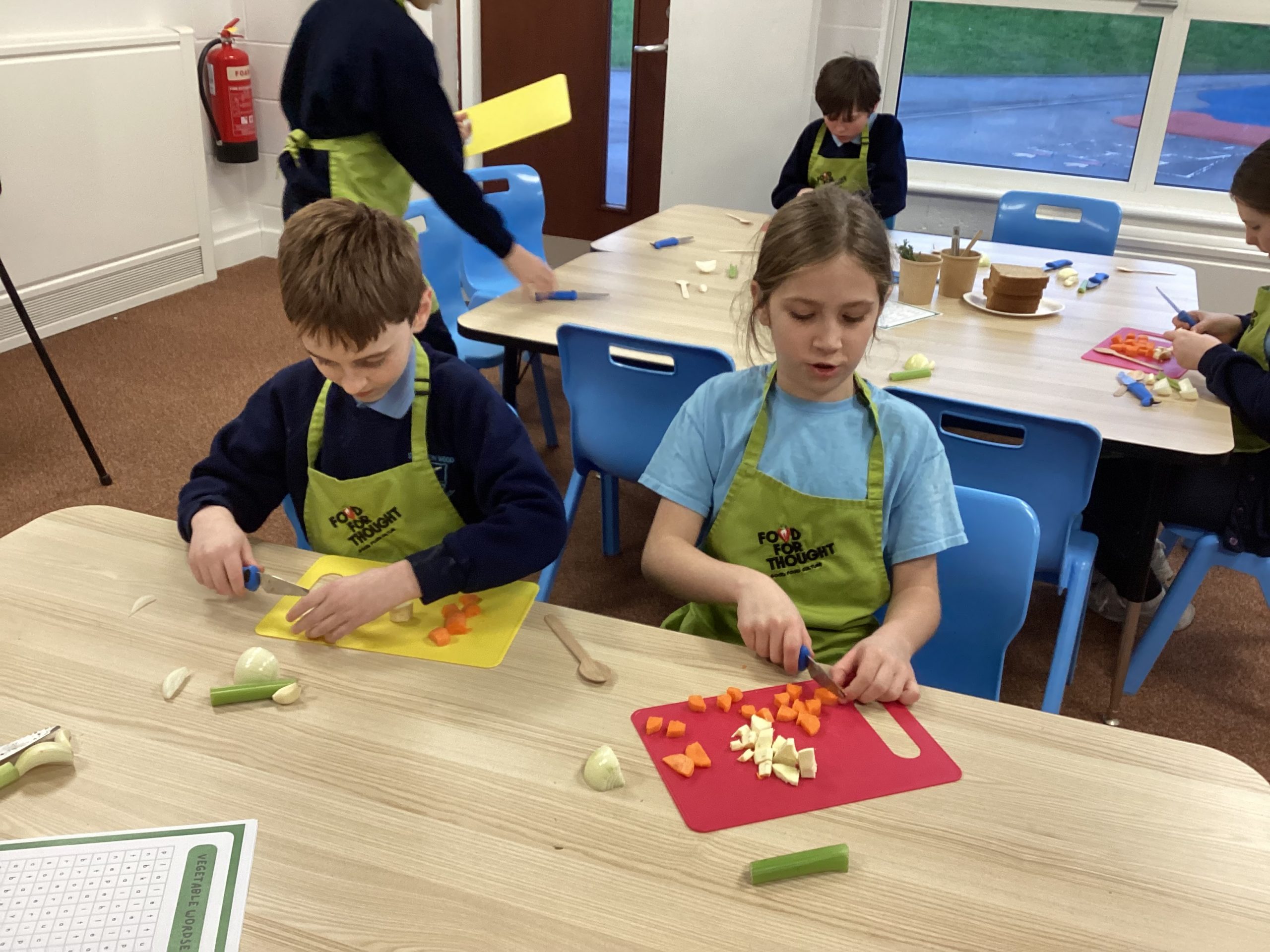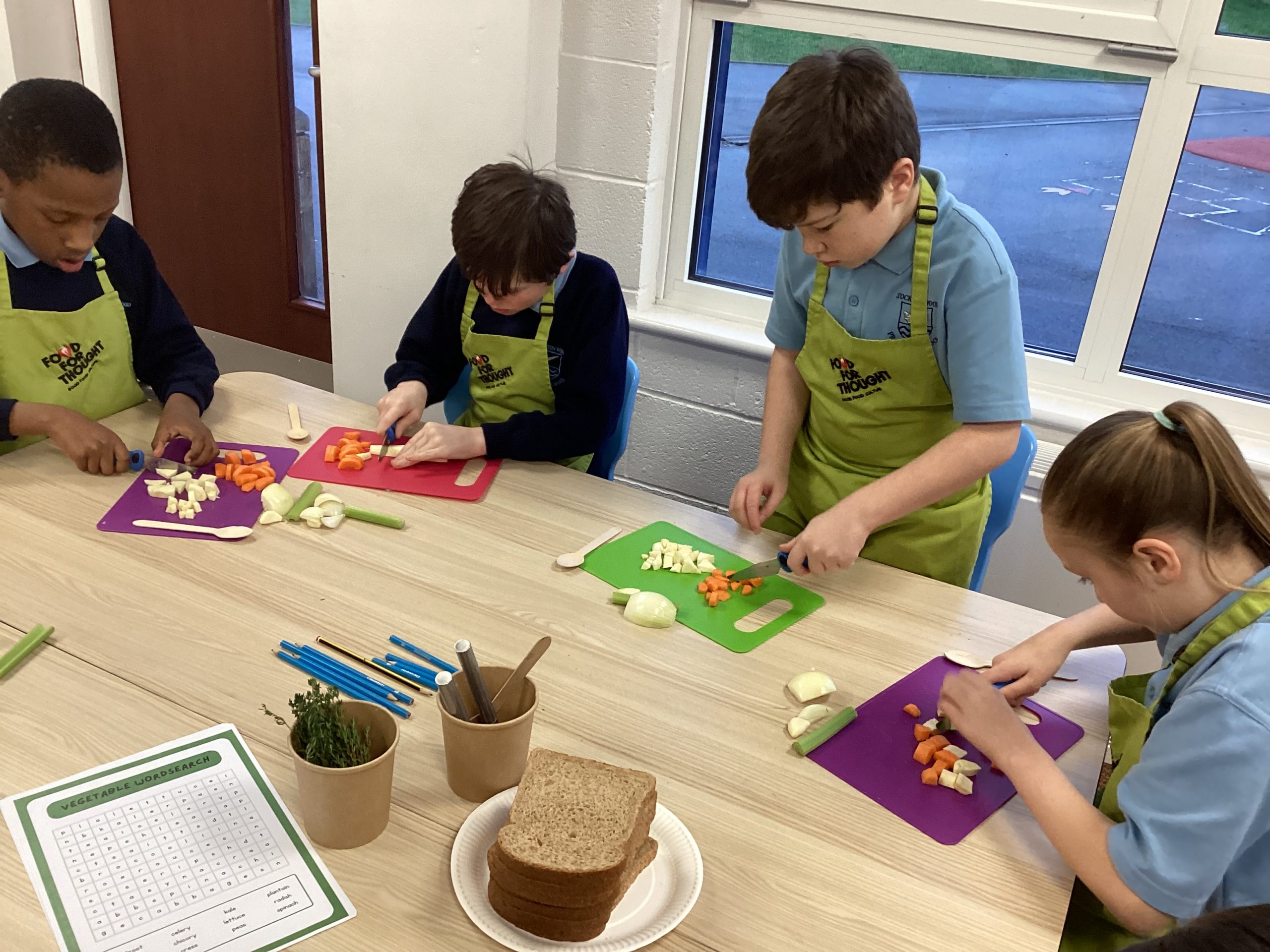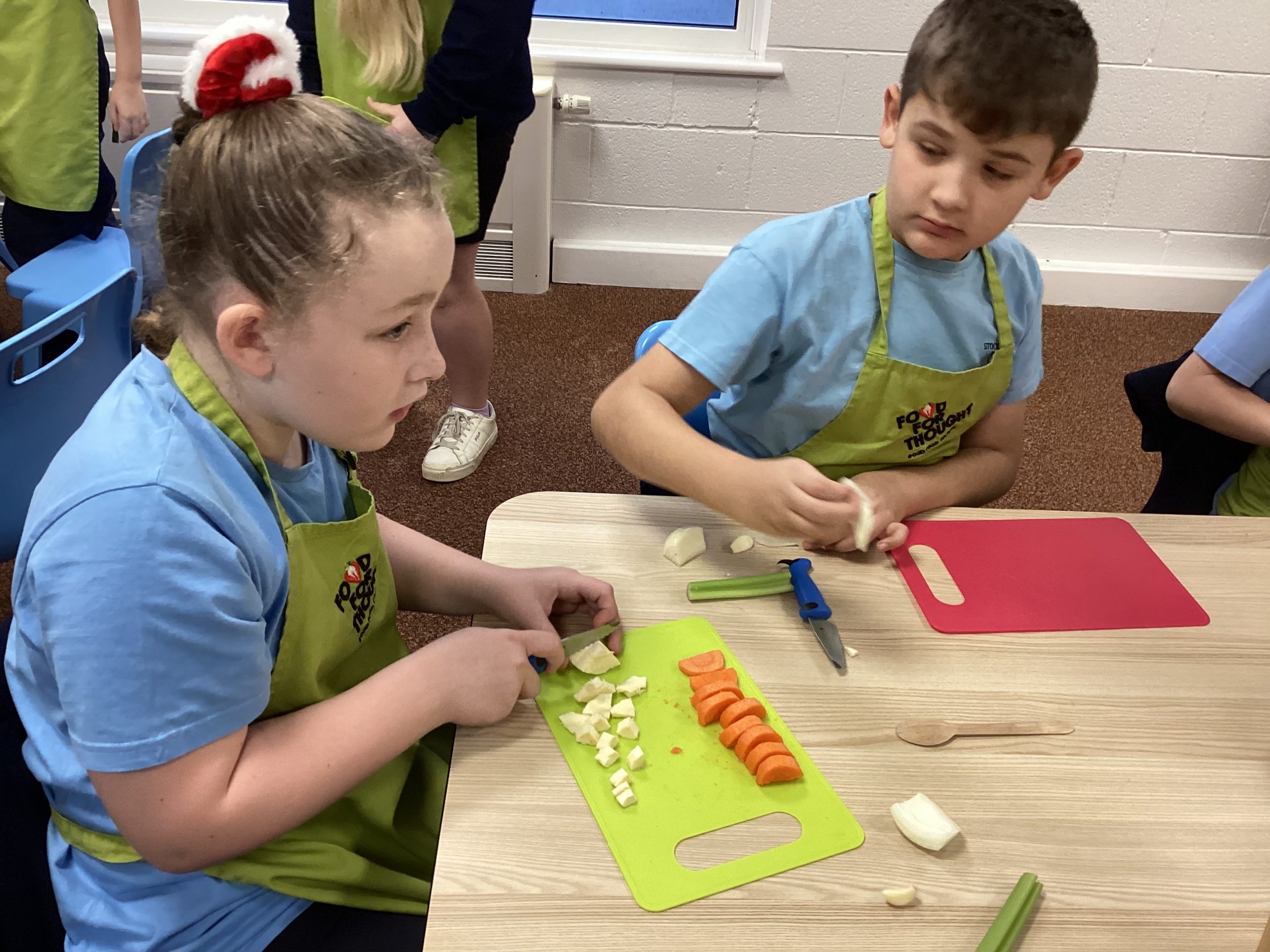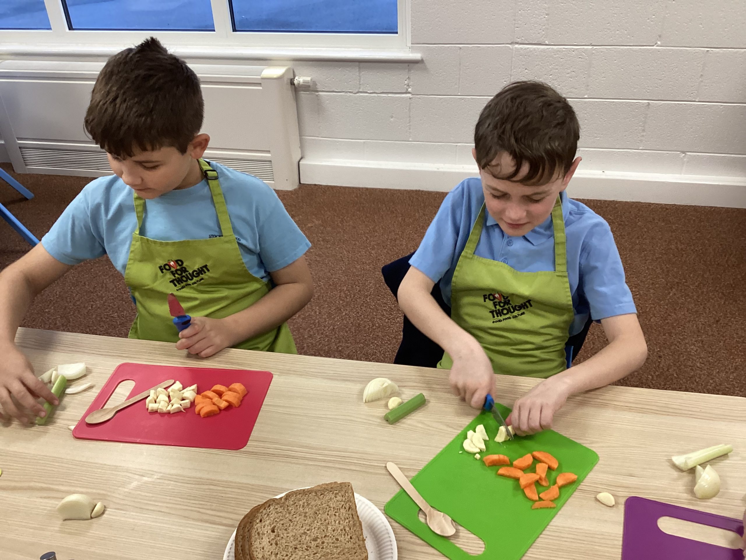 We have learnt how to chop onions, parsnips, celery, carrots and garlic! The onions made us cry! But it was worth it because it made our soup taste delicious. There are definitely some future chefs in the making at Stockton Wood.