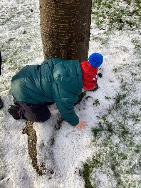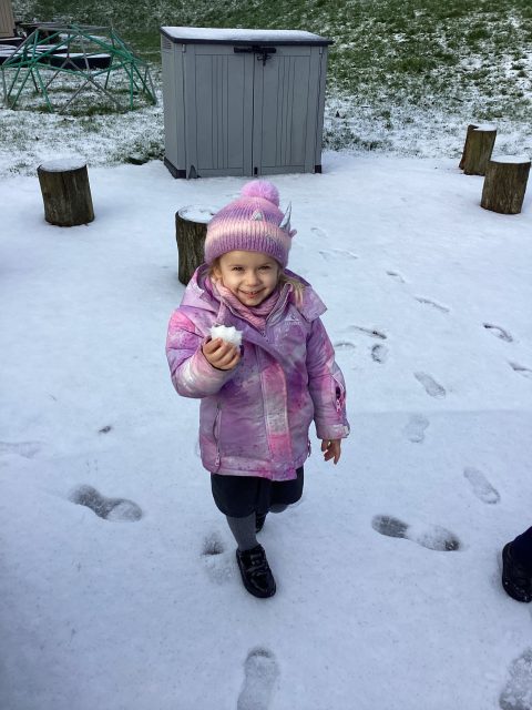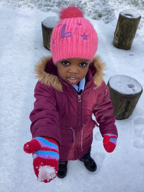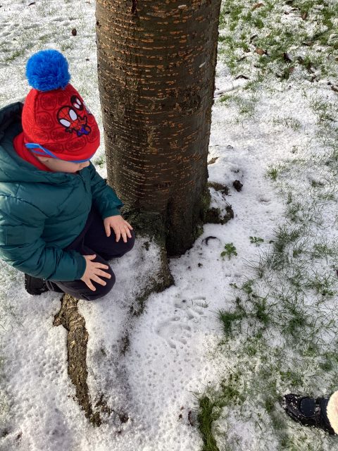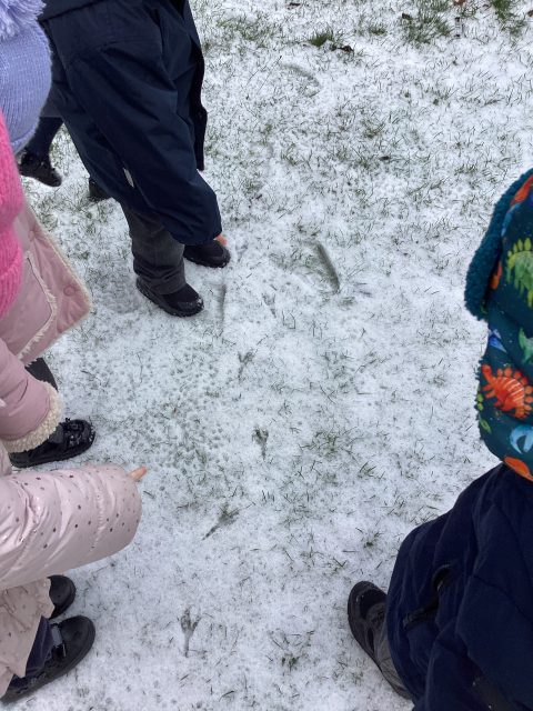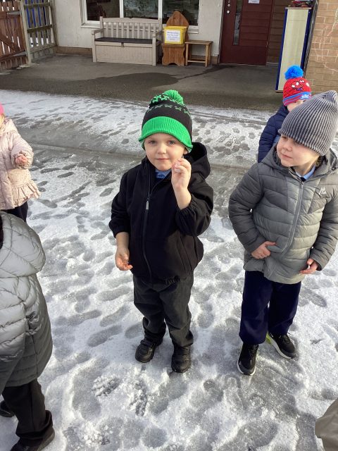 We were so excited to explore the snow and ice today! We were very careful not to slip, and listened really carefully to our rules when we were outside. We were only able to stay out for 10 minutes, but we managed to learn so much! We found tracks in the snow…we decided they belonged to a bird, and we followed them all the way across our playground, across the grass, to the tree! We could hear a bird singing at the top of the tree, so we decided we had found the creature that had made the prints! How exciting! The children used words such as soft, cold, icy, slippy, wet and crunchy to describe the ice and snow. We warmed up on the carpet with a story about foxes playing in the snow, and the children made a fantastic connection in the story: the foxes left footprints in the snow, just like our visiting bird 🐦