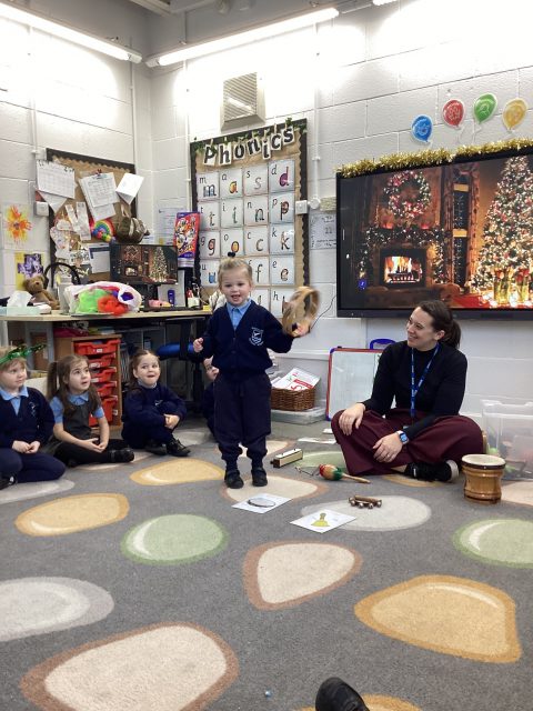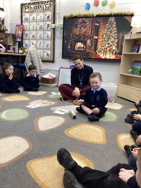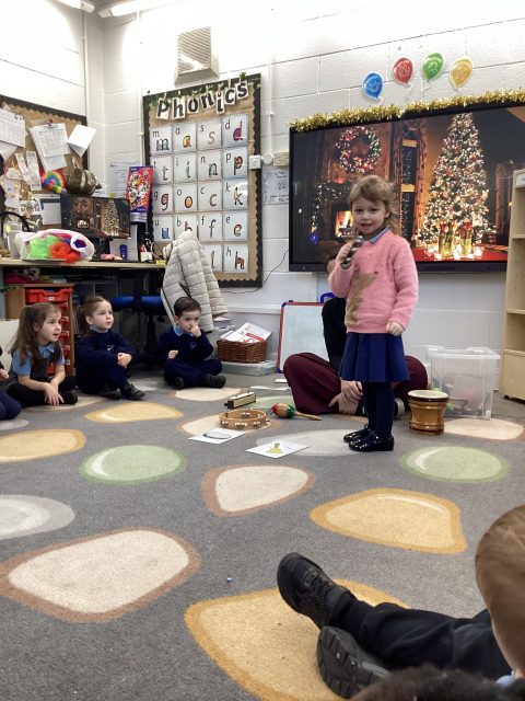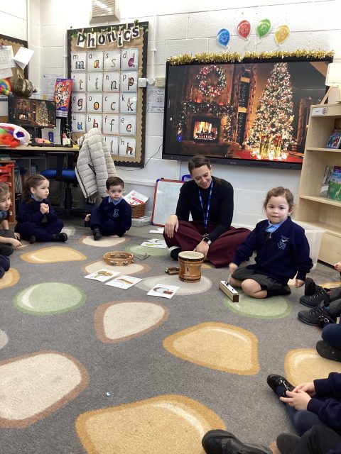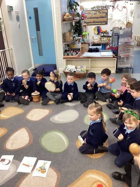 We listened to the sounds each instrument made, and then closed our eyes and used our ears to identify them. We then had to identify a rhythm, which links to our learning in maths about patterns.