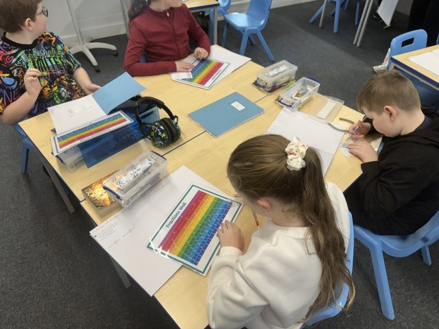 Year 4 have been enjoying Maths lessons this week. We have been using our resources to help with our multiplication and division.