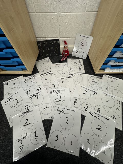 ‘What could my parts be to make 2 wholes?’ The children got really creative with fractions and numbers to make 2 wholes.