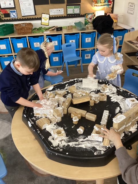 Today Reception explored Christian Churches, we discussed what makes a church and the churches we have seen or been to ourselves. We made our own churches using blocks and foam.