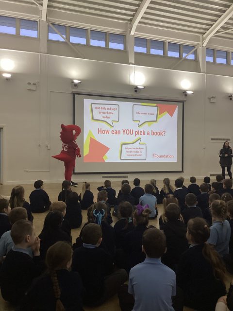 We were delighted to welcome a special visitor this morning — Mighty Red! He joined us in assembly to share all about LFC’s Feed Your Mind reading programme.