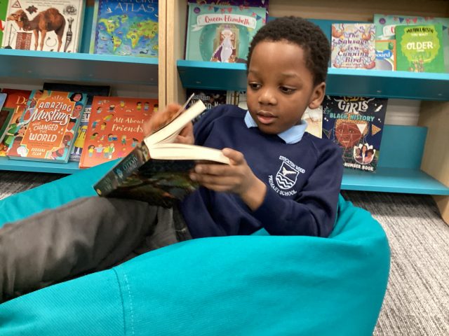 Year 4 love exploring new books in the library.