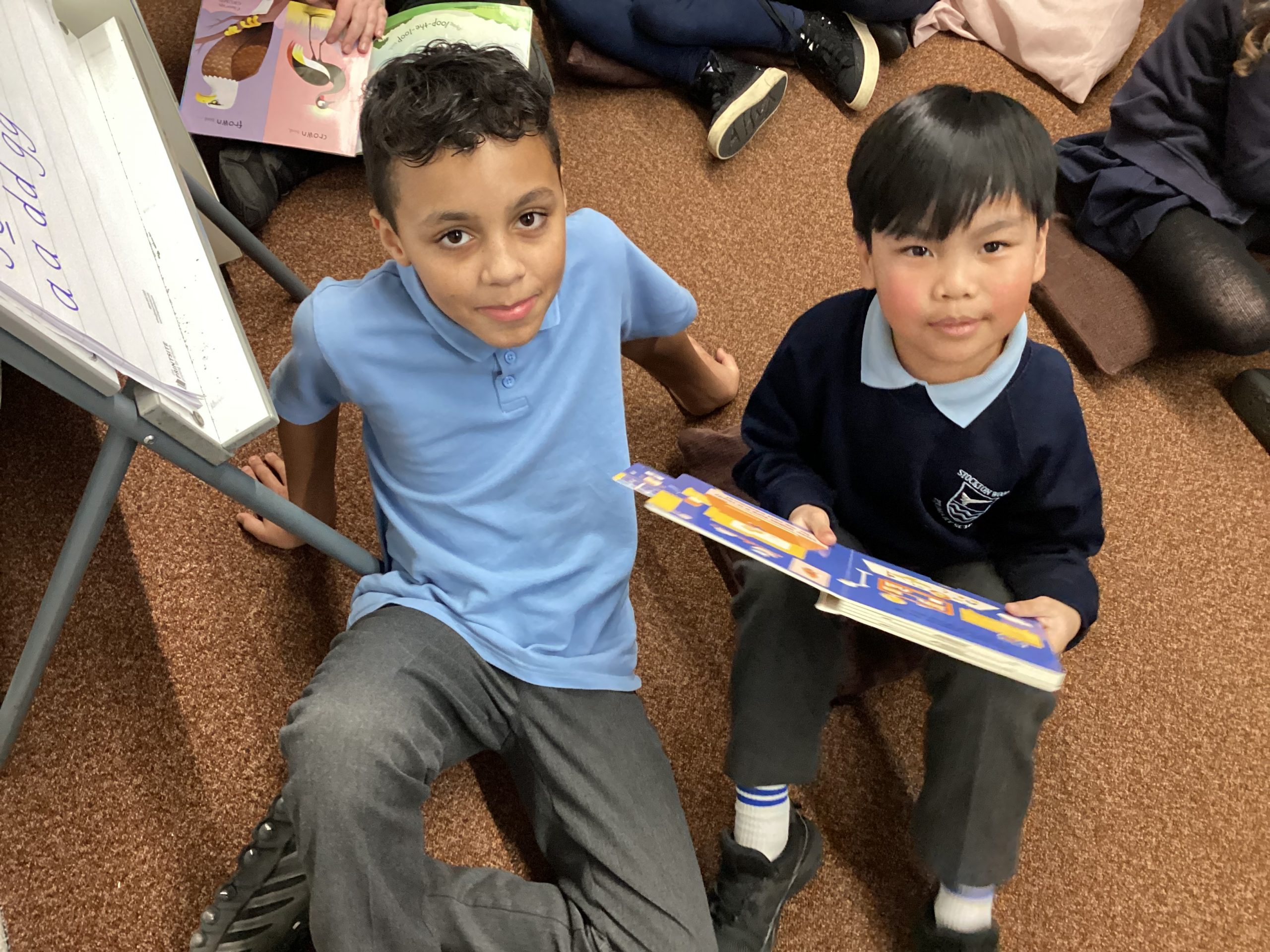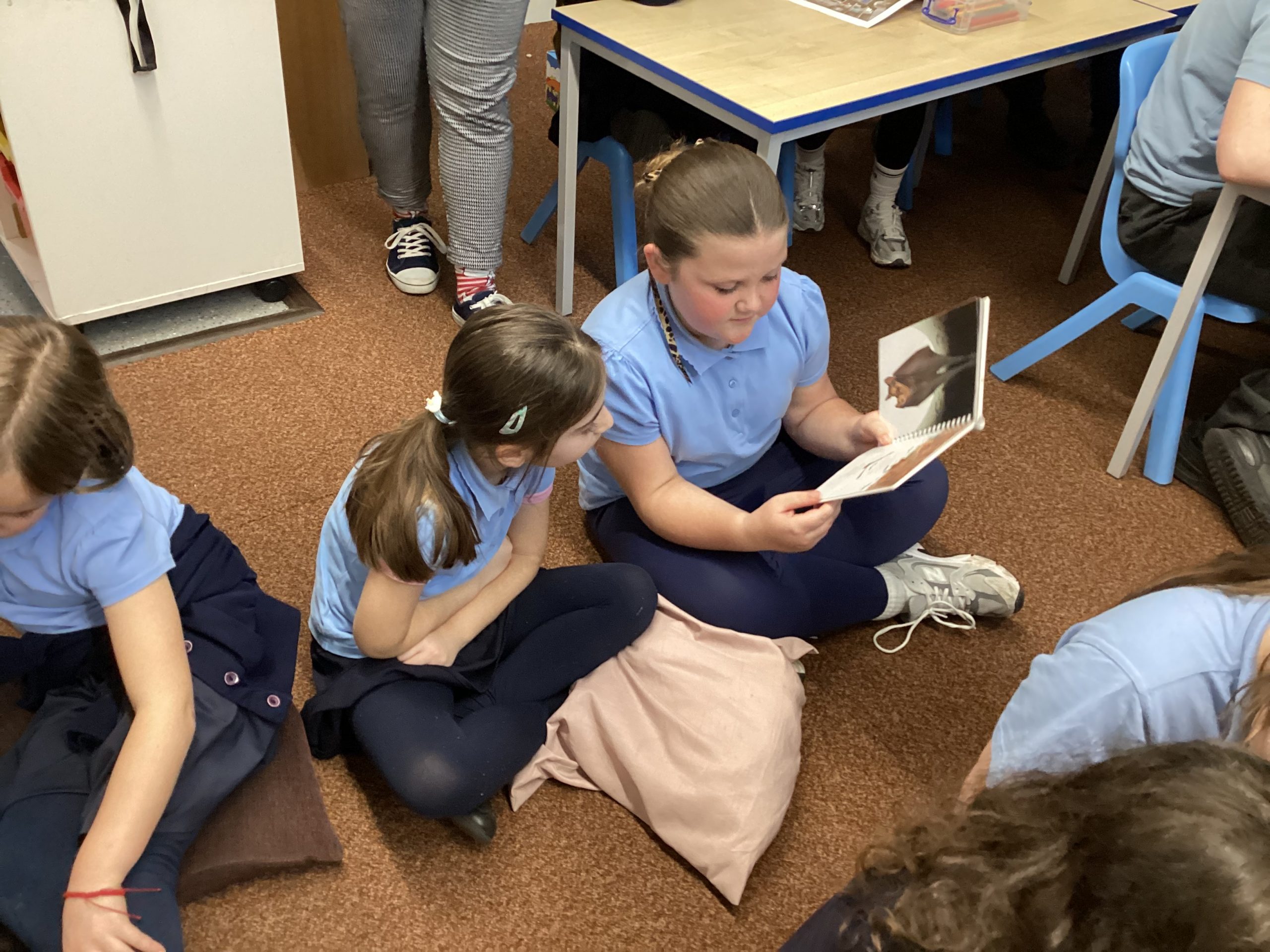 Year 4 came and read a story to the Reception children. The Year 4 children read and asked questions to the Reception children. The Reception children even read some words to the Year 4 pupils.