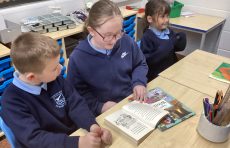Year 4 love exploring new books in the library.