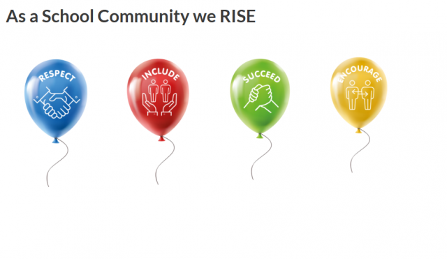 As a School Community we RISE – Respect, Include, Succeed, and Encourage.