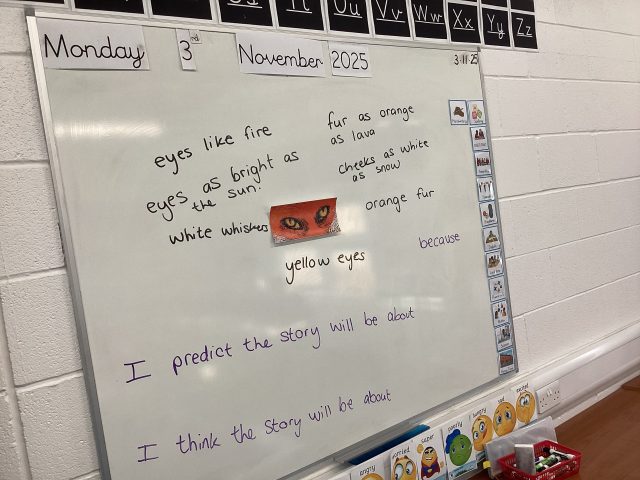 In English, we’ve been making predictions about our new book. We look at items, read the notes in a jar, listened to an extract and looked closely at illustrations.